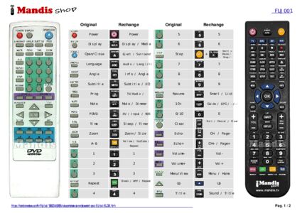 Un document est inclus pour vous aider à utiliser facilement la nouvelle télécommande, en indiquant la correspondance des boutons.