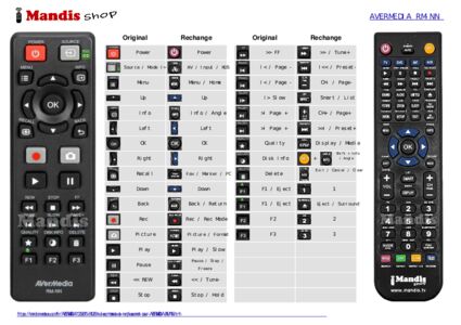 Accueil > Marques > Télécommandes AVERMEDIA > Télécommande pour AVERMEDIA RM-NN