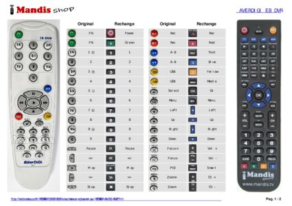 Cette télécommande remplace entièrement votre AVerDiGi (RM-JP) et offre toutes les fonctions de l'originale.