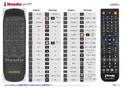 Cette télécommande remplace entièrement votre AVER001 et offre toutes les fonctions de l'originale.