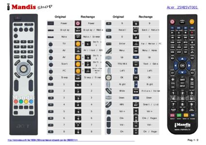 Un document est inclus pour vous aider à utiliser facilement la nouvelle télécommande, en indiquant la correspondance des boutons.