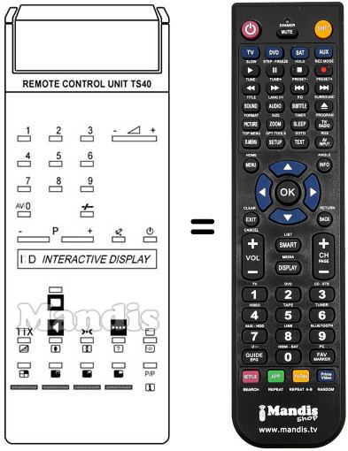 Télécommande qui remplace la télécommande d'origine TS 40 car elle possède les mêmes fonctions.