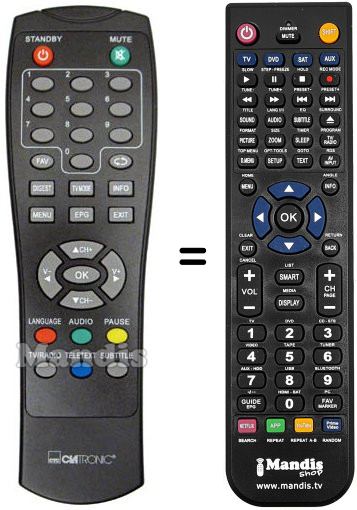 Télécommande qui remplace celle d'origine car elle possède les mêmes fonctions.