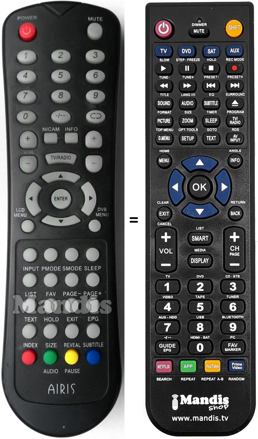 Télécommande qui remplace celle d'origine car elle possède les mêmes fonctions.