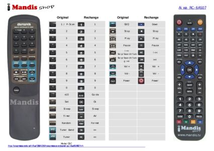 Un document est inclus pour vous aider à utiliser facilement la nouvelle télécommande, en indiquant la correspondance des boutons.