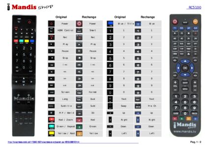 Un document est inclus pour vous aider à utiliser facilement la nouvelle télécommande, en indiquant la correspondance des boutons.