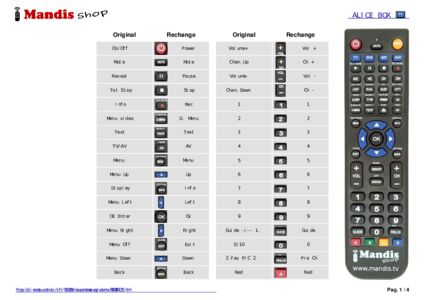 Accueil > Marques > Télécommandes Alice > Télécommande pour Alice REMCON1015