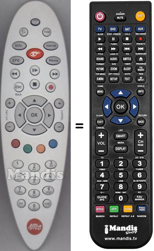 Télécommande qui remplace celle d'origine car elle possède les mêmes fonctions. Il ne s'agit pas d'une télécommande universelle mais d'une télécommande qui remplace celle d'origine. Vous recevrez la télécommande prête à fonctionner, vous n'aurez qu'à mettre les piles. Il n'est pas nécessaire de la programmer. Nous vous garantissons que la télécommande aura exactement les mêmes fonctions que celle d'origine.