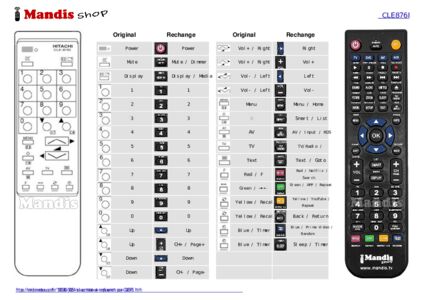 Un document est inclus pour vous aider à utiliser facilement la nouvelle télécommande, en indiquant la correspondance des boutons.