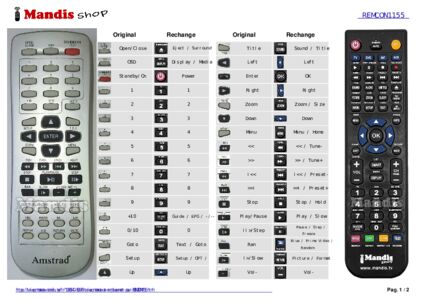 Un document est inclus pour vous aider à utiliser facilement la nouvelle télécommande, en indiquant la correspondance des boutons.