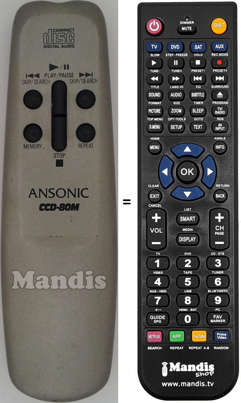 Télécommande rechange CCD-80M de la marque Ansonic.