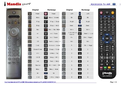 Un document est inclus pour vous aider à utiliser facilement la nouvelle télécommande, en indiquant la correspondance des boutons.