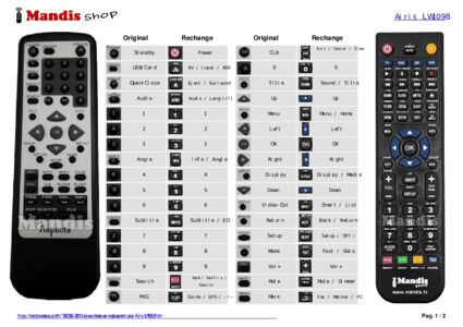 Un document est inclus pour vous aider à utiliser facilement la nouvelle télécommande, en indiquant la correspondance des boutons.