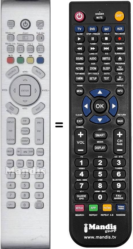 Télécommande qui remplace celle d'origine car elle possède les mêmes fonctions.