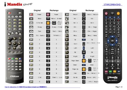 Un document est inclus pour vous aider à utiliser facilement la nouvelle télécommande, en indiquant la correspondance des boutons.