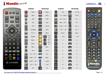 Un document est inclus pour vous aider à utiliser facilement la nouvelle télécommande, en indiquant la correspondance des boutons.
