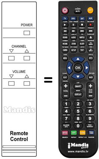 Télécommande qui remplace celle d'origine car elle possède les mêmes fonctions.