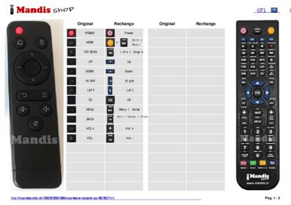 Télécommande de remplacement pour GT1