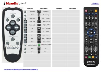 Cette télécommande remplace entièrement votre BOM003 et offre toutes les fonctions de l'originale.