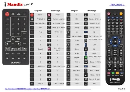 Un document est inclus pour vous aider à utiliser facilement la nouvelle télécommande, en indiquant la correspondance des boutons.