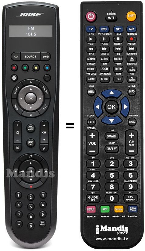 Télécommande qui remplace celle d'origine car elle possède les mêmes fonctions.