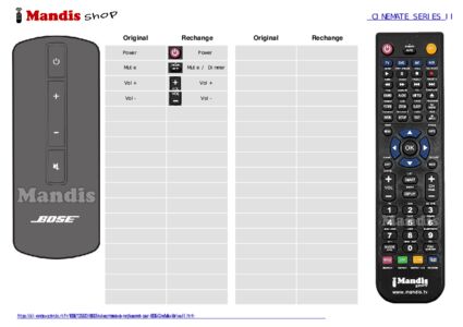 Un document est inclus pour vous aider à utiliser facilement la nouvelle télécommande, en indiquant la correspondance des boutons.