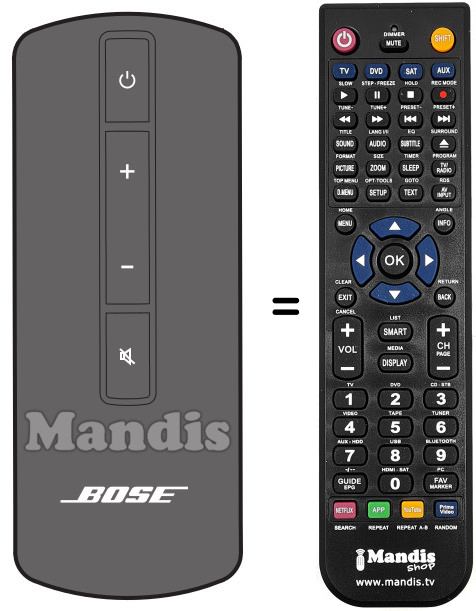 Télécommande qui remplace celle d'origine car elle possède les mêmes fonctions.