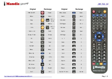Un document est inclus pour vous aider à utiliser facilement la nouvelle télécommande, en indiquant la correspondance des boutons.