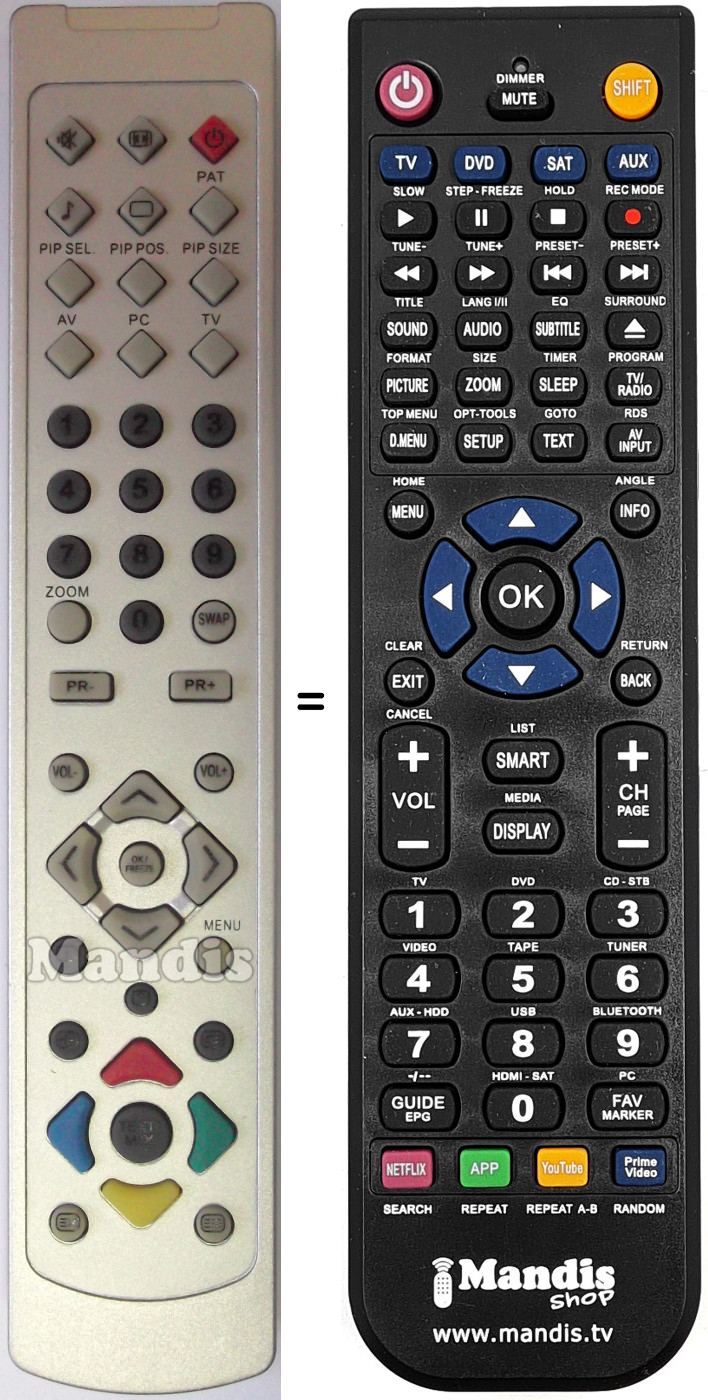 Télécommande qui remplace celle d'origine car elle possède les mêmes fonctions.
