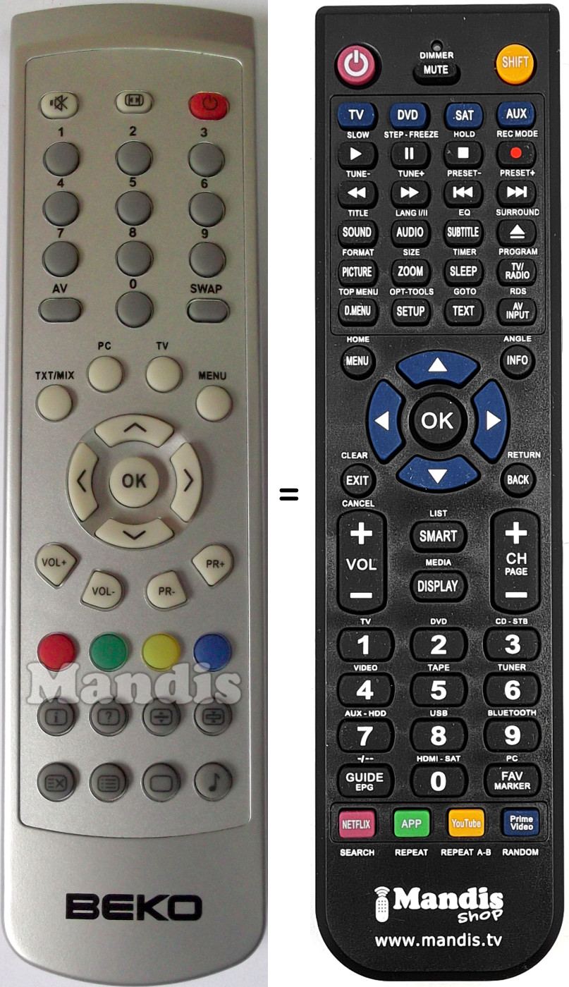 Télécommande qui remplace celle d'origine car elle possède les mêmes fonctions.