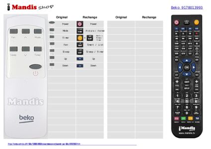 Accueil > Marques climatiseurs > Liste de télécommandes pour climatiseurs > Télécommande pour Beko 9178013993