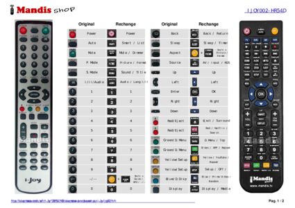 Un document est inclus pour vous aider à utiliser facilement la nouvelle télécommande, en indiquant la correspondance des boutons.