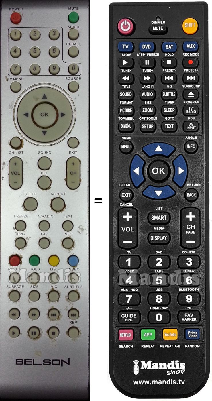 Accueil > Marques > Télécommandes Belson > Télécommande pour BELSON BSV1690