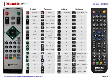 Un document est inclus pour vous aider à utiliser facilement la nouvelle télécommande, en indiquant la correspondance des boutons.