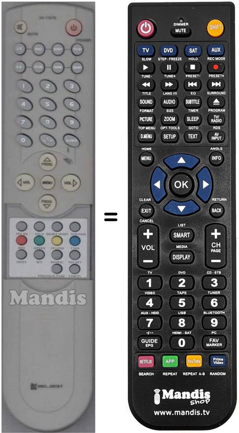 Télécommande qui remplace celle d'origine car elle possède les mêmes fonctions.