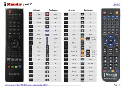 Un document est inclus pour vous aider à utiliser facilement la nouvelle télécommande, en indiquant la correspondance des boutons.