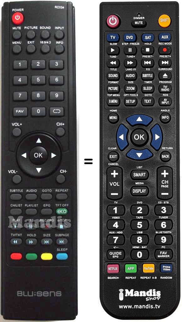Télécommande qui remplace celle d'origine car elle possède les mêmes fonctions.