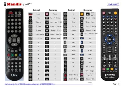 Un document est inclus pour vous aider à utiliser facilement la nouvelle télécommande, en indiquant la correspondance des boutons.