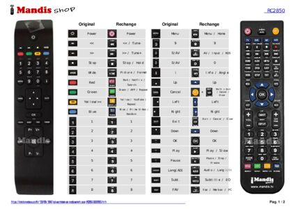 Accueil > Marques > Télécommandes Bush > Télécommande pour BUSH RC2850 (30067685)
