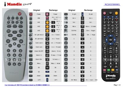 Un document est inclus pour vous aider à utiliser facilement la nouvelle télécommande, en indiquant la correspondance des boutons.