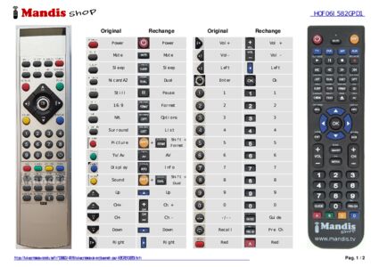 Un document est inclus pour vous aider à utiliser facilement la nouvelle télécommande, en indiquant la correspondance des boutons.
