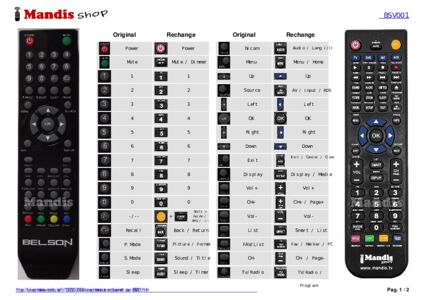 Un document est inclus pour vous aider à utiliser facilement la nouvelle télécommande, en indiquant la correspondance des boutons.