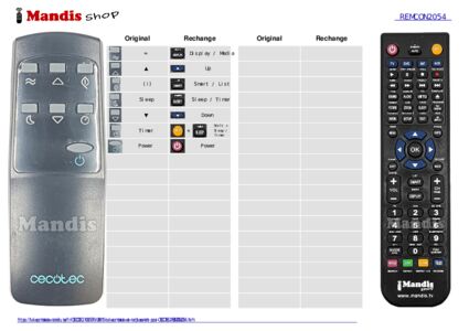 Télécommande de remplacement pour REMCON2054
