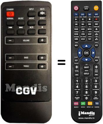 Télécommande qui remplace celle d'origine car elle possède les mêmes fonctions.