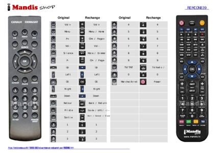 Un document est inclus pour vous aider à utiliser facilement la nouvelle télécommande, en indiquant la correspondance des boutons.