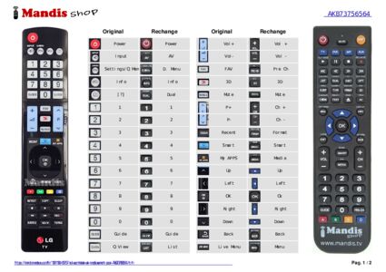 Un document est inclus pour vous aider à utiliser facilement la nouvelle télécommande, en indiquant la correspondance des boutons.