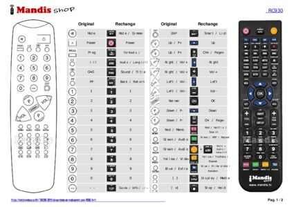 Cette télécommande remplace entièrement votre 930 et offre toutes les fonctions de l'originale.