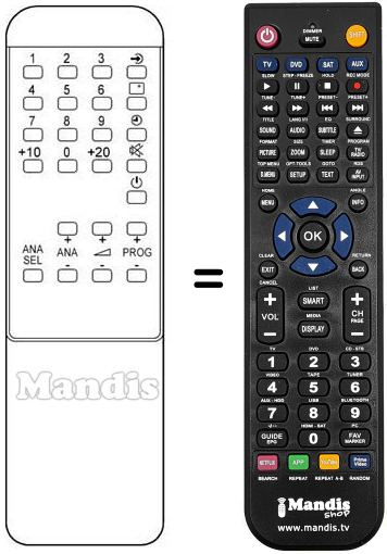 Télécommande qui remplace celle d'origine car elle possède les mêmes fonctions.