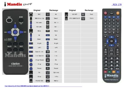 Accueil > Marques > Télécommandes Clarion > Télécommande pour CLARION RCB-176