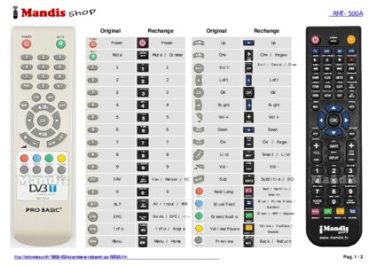 Un document est inclus pour vous aider à utiliser facilement la nouvelle télécommande, en indiquant la correspondance des boutons.